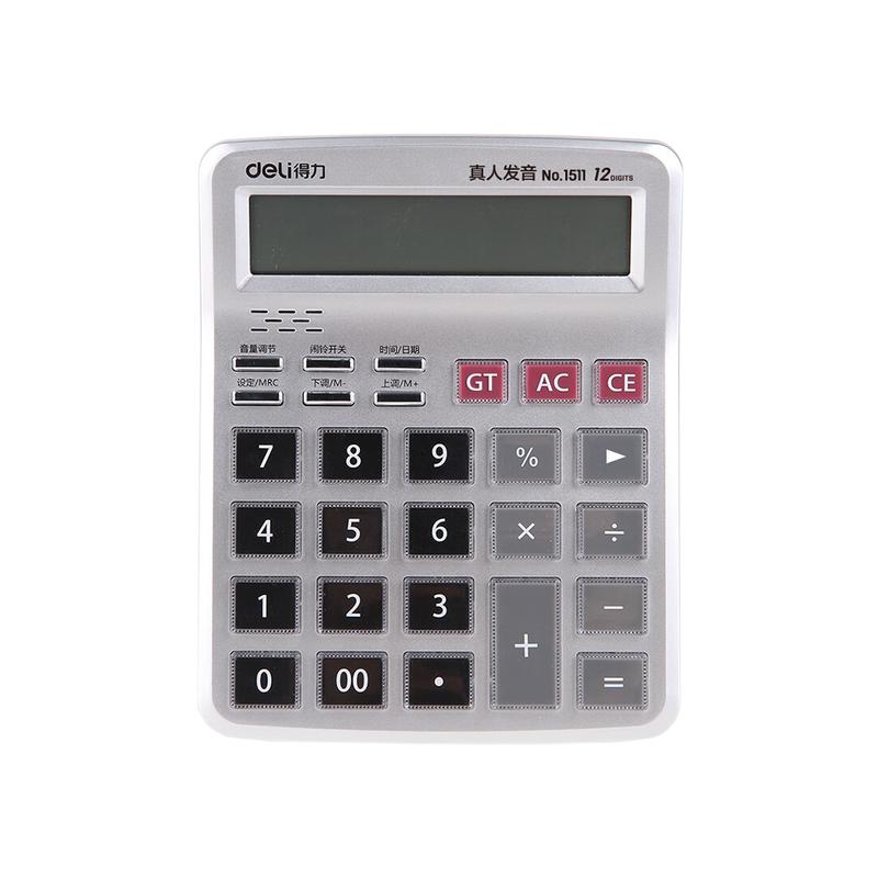 得力(deli)语音计算器 1511 12位 银色(单位:个)
