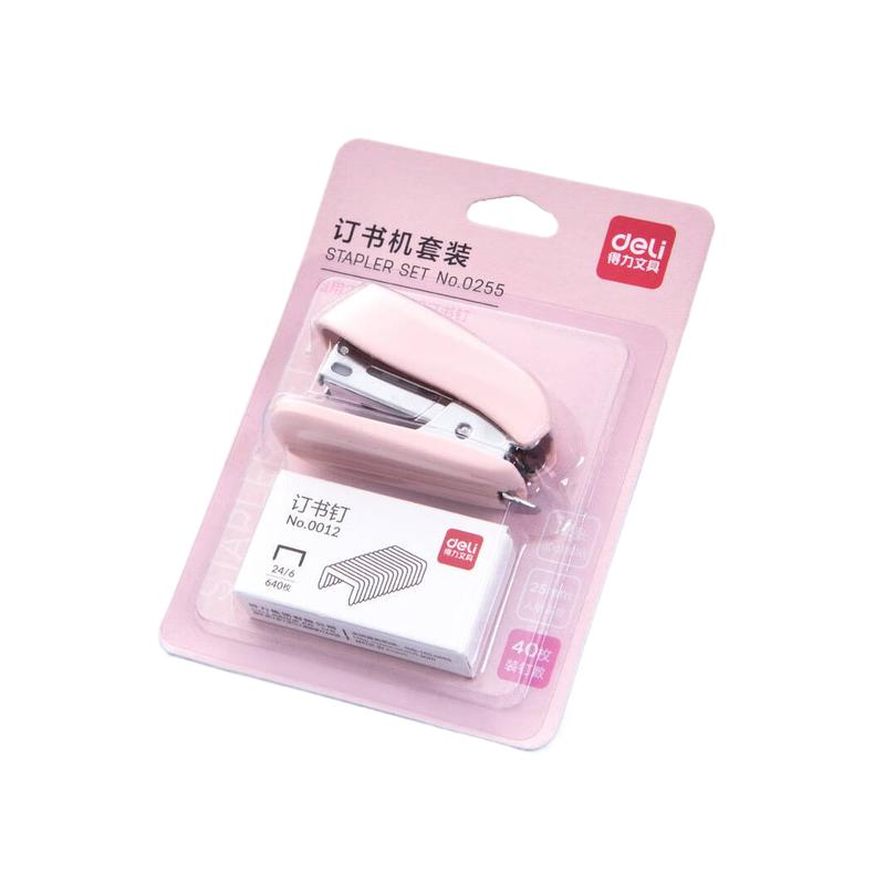 得力(deli)订书机套装 0255 12# 粉色 含订书钉(单位:卡)