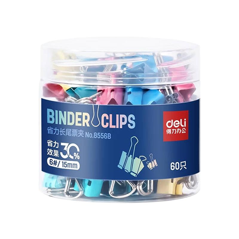 得力(deli)长尾夹 8556B 15mm 彩色 60只/筒(单位:筒)