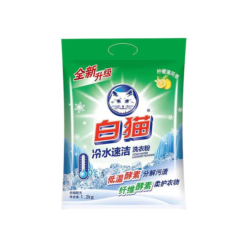 白猫 洗衣粉 柠檬薄荷香 1.2kg 冷水速洁(单位:袋)