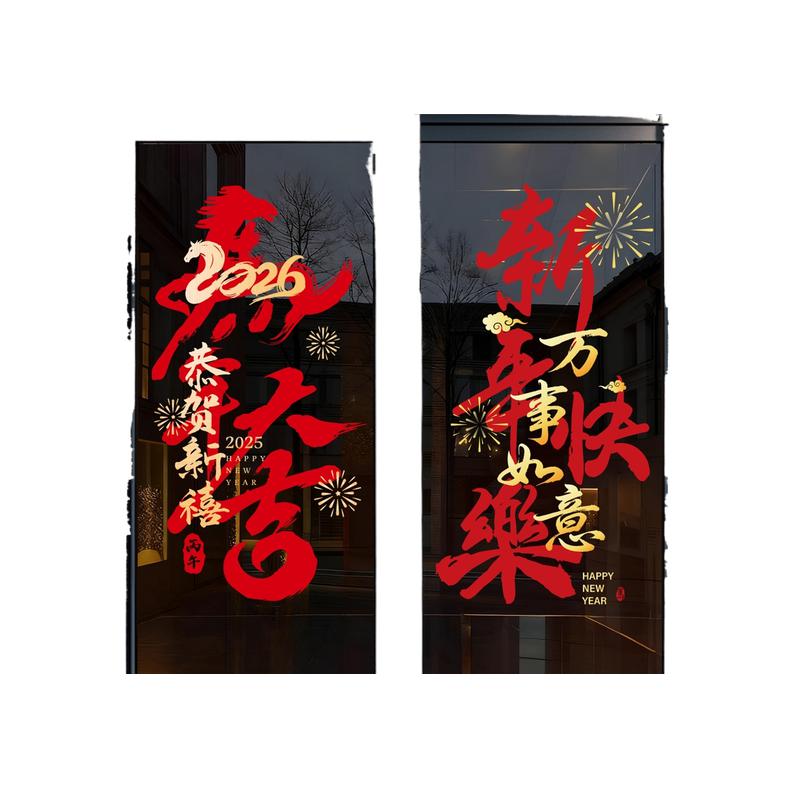 纵雀 大门贴纸窗花 马年大吉 新年快乐 中号 60*120cm (单位:对)