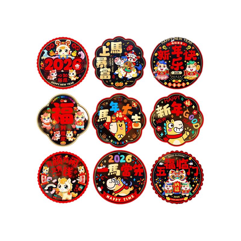 嫣设计 窗花玻璃贴 40# 大号 迎春纳福 马上暴富 20张/套(单位:套)